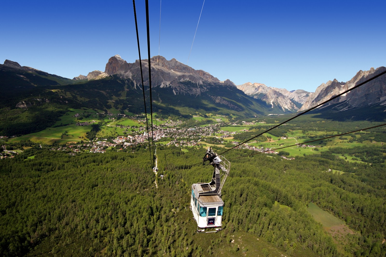 In totale, la funivia supera 900 m di dislivello e si sviluppa, già dalla sua costruzione nel 1939, attraverso 3 stazioni: quella inferiore a Cortina, nei pressi della stazione degli autobus (metri 1.230 s.l.m.), quella intermedia in località Mandres (m 1.500 s.m.) e una stazione a monte, raggiunta con un’unica successiva campata, superando un dislivello di 646 metri che, con uno slancio rapidissimo ed emozionante, approda al rifugio Faloria. Proprio quest’ultimo tratto della salita, che prevede il transito della vettura a pochi metri dalla roccia, correndo parallela alla montagna, regala ai passeggeri una spettacolare vista sulle Dolomiti che difficilmente potrebbe essere catturata altrimenti.
